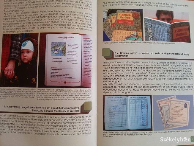 „A magyarok jelentős diszkriminációnak vannak kitéve, annak ellenére, hogy a törvényekben léteznek velük kapcsolatos védő rendelkezések. A diszkrimináció különböző formái, melyeket az RMDSZ idézett, többek között a következők: a magyar nyelv használatának a nehézkessége az állam intézményeiben és a törvényszéken, az orvosságok feliratairól hiányzó anyanyelvű tájékoztatás, az oktatásban tapasztalható nyelvi és kulturális diszkrimináció, személyes iratok, személyi igazolvány és hivatalos levelezés kizárólag román nyelven, valamint magyarellenes médiakampányok és a közösségi szimbólumok ellen intézett peres eljárások” – áll az amerikai jelentésben.