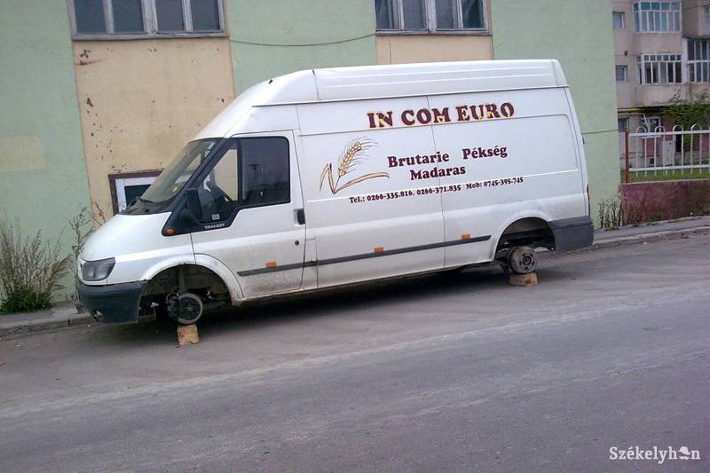 Meglepődéssel tapasztalta pénteken hajnalban a madarasi pékség autóvezetője, hogy nem tud elindulni kenyeret szállítani: kisteherautójának három kereke is hiányzott, ismeretlen tettesek „csutakokra tették” a járművet.