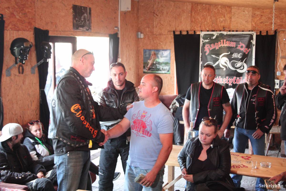 Összesen több mint 15 ezer lejt adtak át szombaton a székelyudvarhelyi Independent Eagles M. C., a kézdivásárhelyi Flagellum Dei M. C., a kászoni KMB Motors M. C., a csíkszeredai Rebel Wolves M. C. és a marosvásárhelyi Auld Cut M. C. motorosklubok képviselői a két beteg gyerek hozzátartozóinak. A székelyföldi motorosok támogatóik, jótékonykodók és a szentegyházi motorostalálkozó részvevőinek segítségével gyűjtötték össze az adományt. A rendezvényt szervező öt motorosklub korábban is jótékony célra fordította a rendezvény bevételének jelentős részét, tavaly a Szent Gellért Alapítvány szentegyházi otthonának segített.