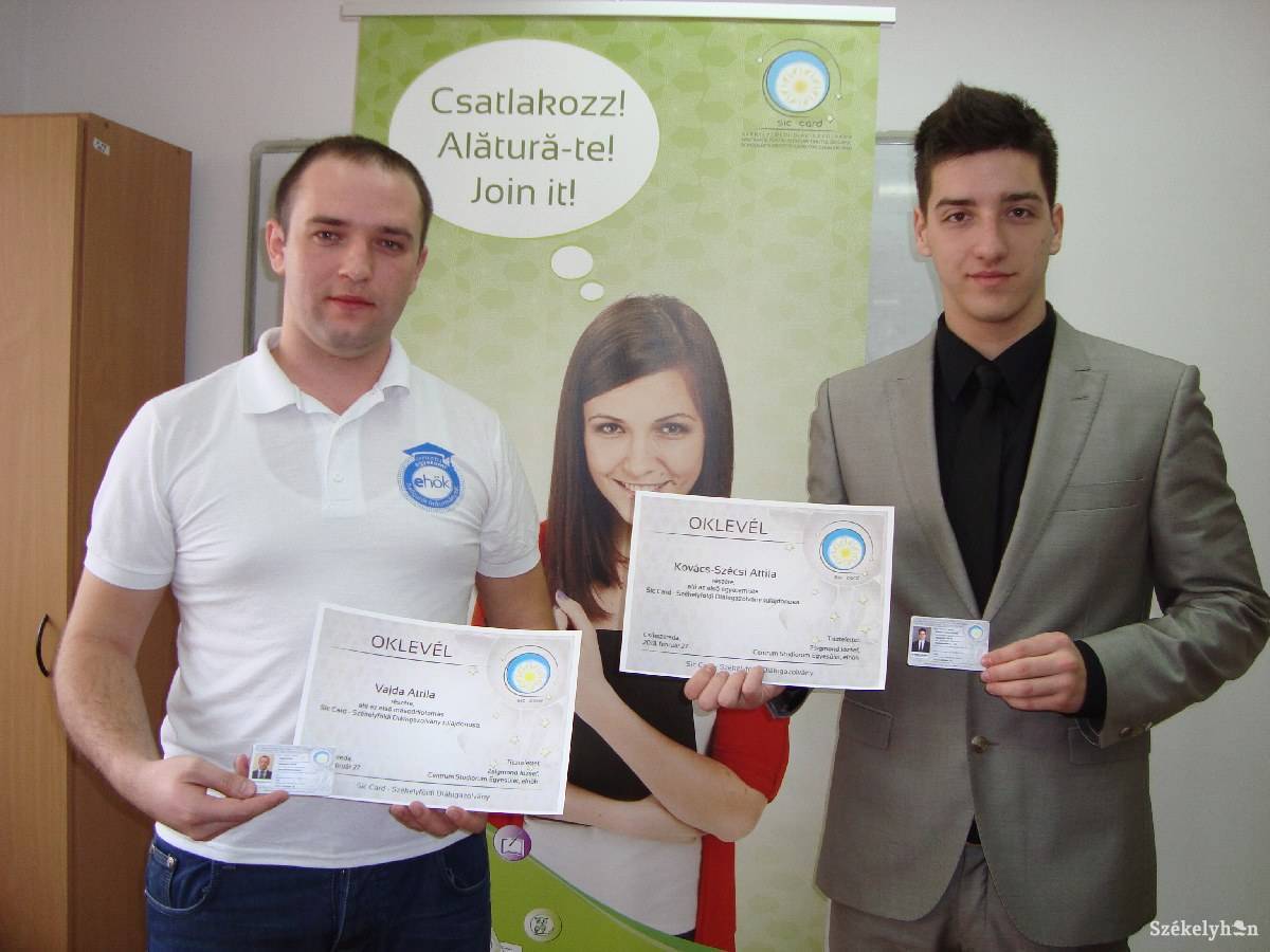Csíkszeredában adták át szerdán az első két székelyföldi diákigazolványt: a kártyákat a Sapientia Erdélyi Magyar Tudományegyetem diákjai kapták meg. További félezer igénylő várja saját diákigazolványát.