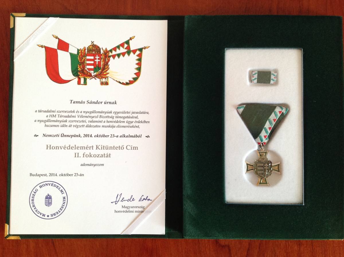 „A nekünk adott díjjal tulajdonképpen Székelyföldet tüntette ki Magyarország honvédelmi minisztere. Akik javasoltak, és akik döntöttek, azért tették, mert a székelyföldi emberek, családok történelmi múlt iránti tiszteletét és a napi kitartó munkáját akarják elismerni” – mondta Tamás Sándor.