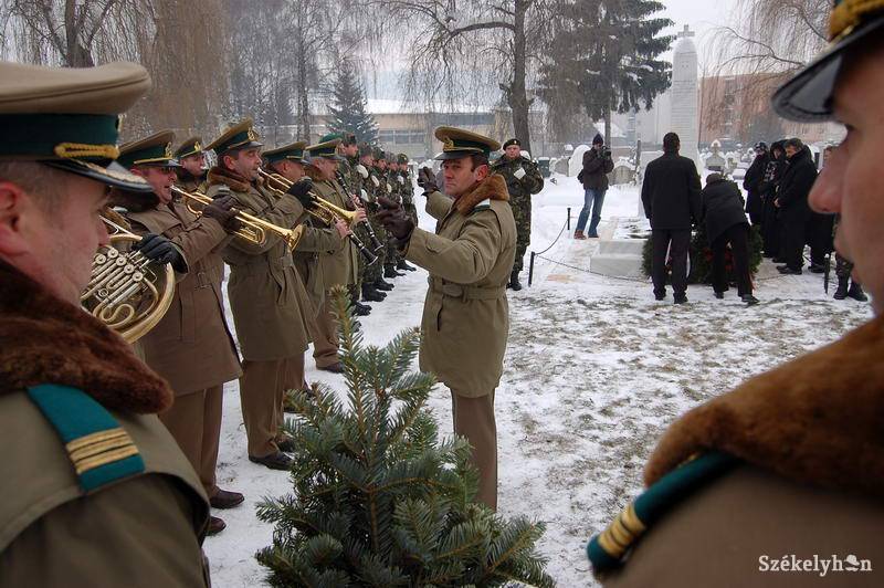 A katonai tiszteletadással évente megszervezett megemlékezésen – Ráduly Róbert polgármesternek a keddi önkormányzati ülésen elhangzott szavait idézve – pofátlanul kevesen vettek részt, annál is inkább, hogy idén kerek évfordulója is volt a decemberi eseményeknek. A családtagok mellett néhány ismerősük hajtott fejet a hősi halott sírjánál, képviseltette magát az erdőalji hegyivadász-alakulat, ott volt a katonai zenekar.