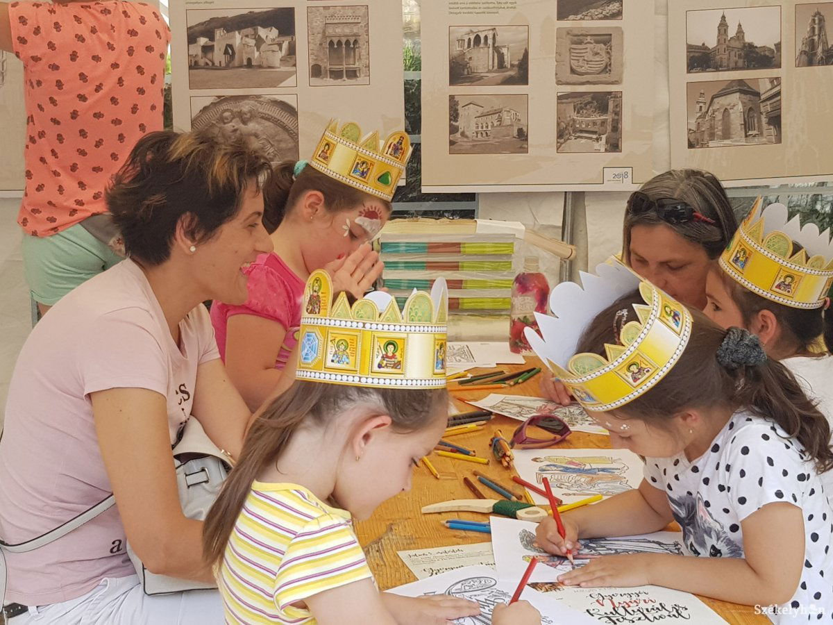 A gyermekek Corvinákat ugyan nem illusztráltak, de a kézműves sátor alatt lelkesen rajzoltak, színeztek, közben számos ismeretet szerezhettek a visszaidézett történelmi korról. Aki odafigyelt és átment a – természetesen álruhában – idelátogató Mátyás vizsgáján, az még egy „igazi” királyi koronát és egyéb jutalmakat is hazavihetett. A Corvinákba pedig vasárnap délután tekinthettek bele az érdeklődők kiállítás keretében. Persze a királyi udvari forgatag nem lehetett volna teljes a minden korban kedvelt finomságok nélkül.