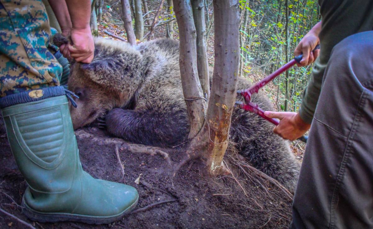 Csapdába ejtett nőstény medvét szabadítottak ki egy Gyergyótölgyes melletti legelőn csütörtökön.