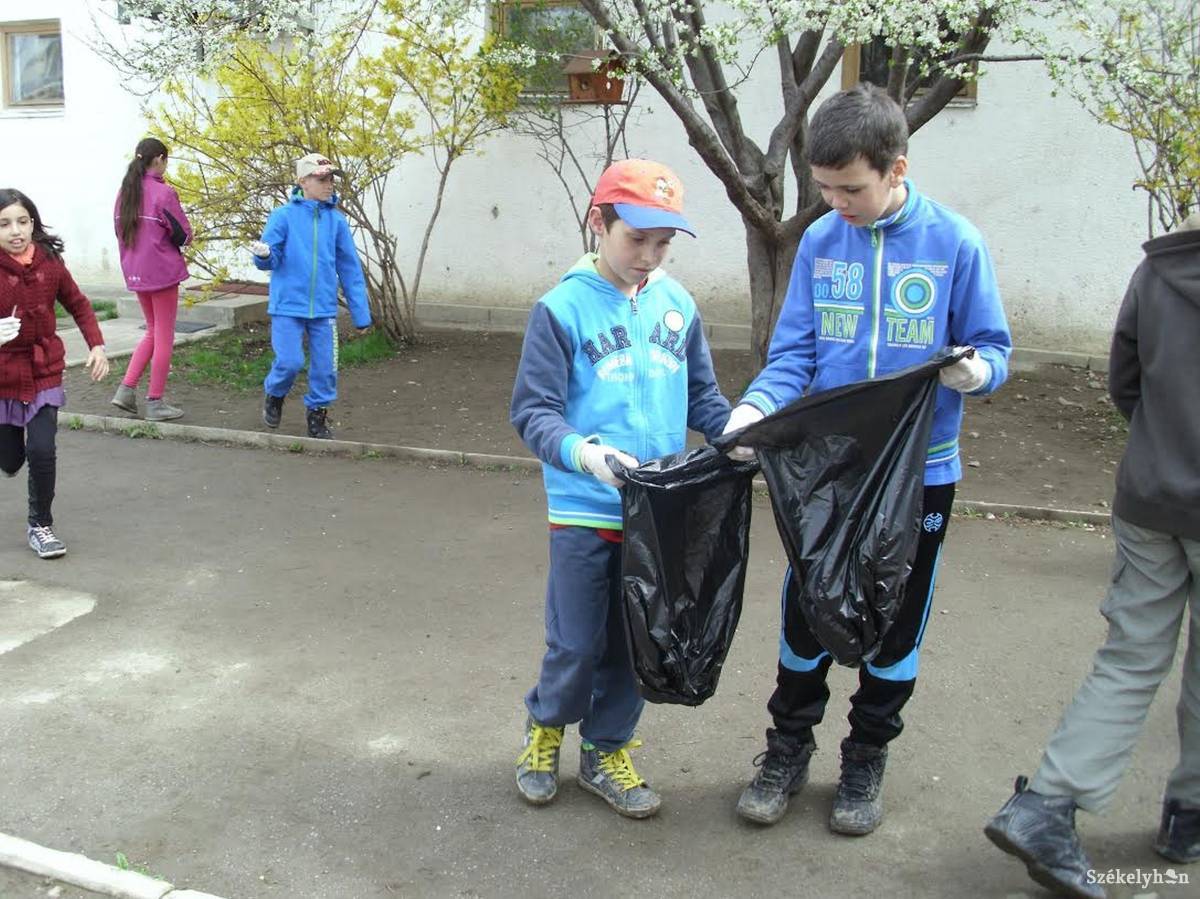 A program egyik fontos állomására az elmúlt csütörtökön délelőtt került sor. Az iskola tanulói takarítási akcióban vettek részt, egyben előkészítették az úgynevezett Kicsi iskola udvarát is a teljes megújulásra.