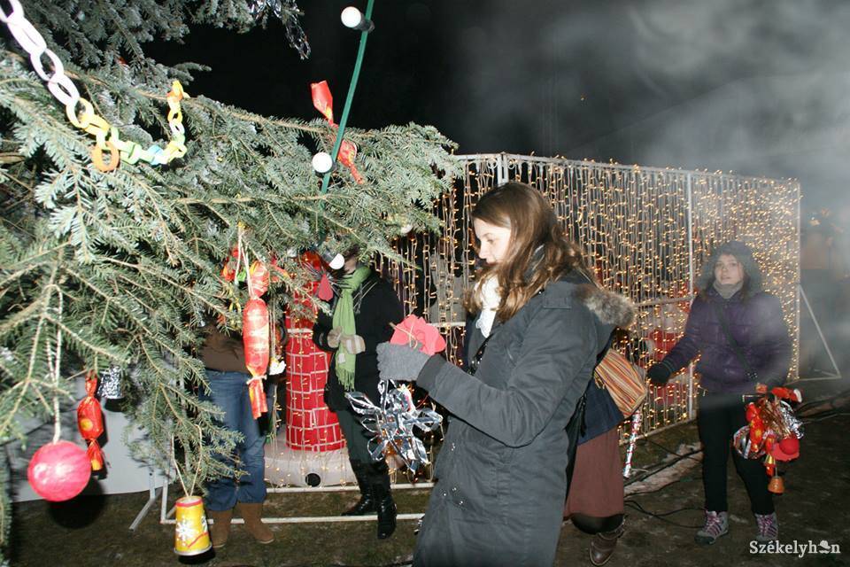 Családias hangulatban díszítették fel hétvégére az ifjúsági karácsonyfát a helyi fiatalok, amely piros, arany és ezüst színekben pompázik a vásár központjában. A díszeket papírból, kartonból, viaszból, fából és különböző szalagokból készítették el a díszítést megelőző héten, a Tanulók Palotájában.