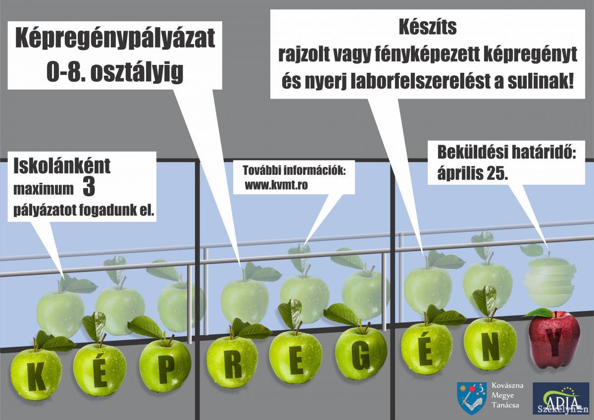 Kovászna Megye Tanácsa a pályázatot olyan a megyében tanuló diákok számára hirdette meg, akik az Alma program keretében napi almához jutnak. A pályázat két korcsoportnak szól: egyik 0-4. osztályig, a másik kategória pedig az 5-8. osztályos iskolásokat célozza. A pályázat célja az alma köré épülő történet bemutatása fényképezett és/vagy rajzolt képregény formájában. Az alkotásban kötelező elemként kell megjelennie az almának, ajánlott, hogy annak jótékony hatásáról is történjen említés. A kiírásban feltételként szerepel az is, hogy a magyar nyelvű pályaműveket román nyelvre is le kell fordítani, illetve javasolják, hogy a román nyelvű szöveg jelenjen meg magyar fordításban is.