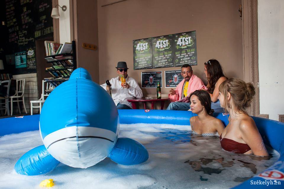 Nagyon meglepődtek azok a vendégek, akik kávézni tértek be a sepsiszentgyörgyi Teinbe kedden délután, ugyanis a helyiség közepén egy medence volt, melyben fürdőruhás vendégek koktéloztak. Az érdekes eseményt a Tone Troopers szervezte, a projektet a jövőben is folytatják.