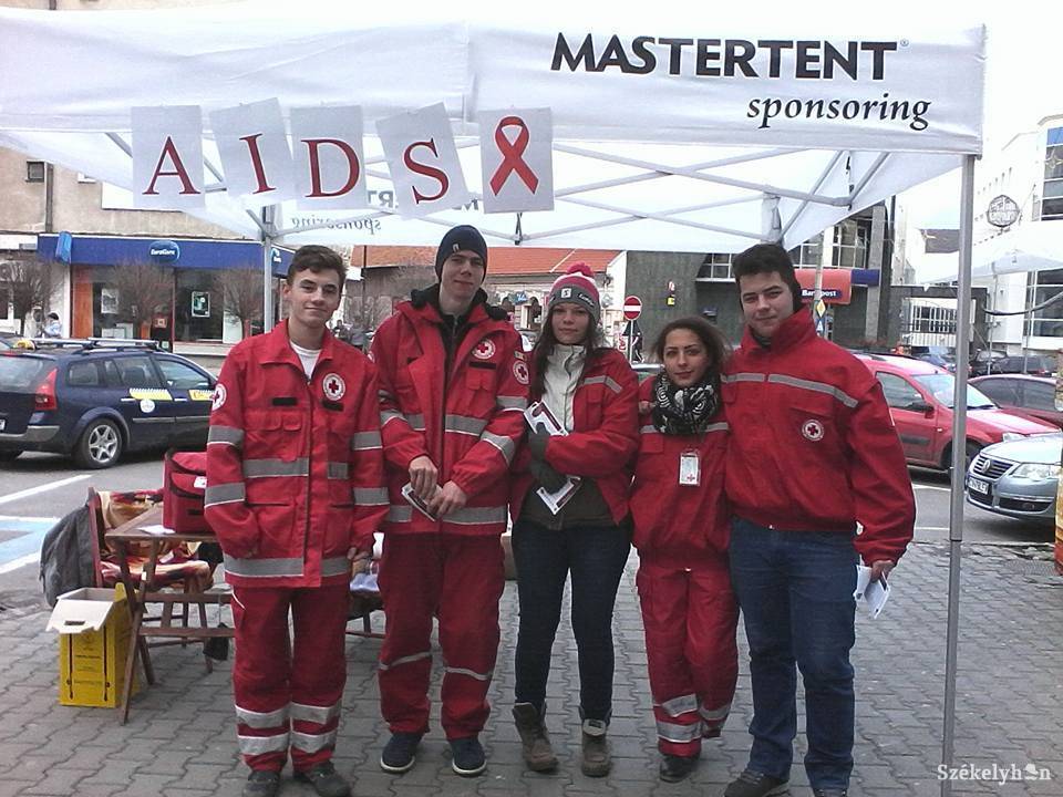 A Kovászna Megyei Vöröskereszt hat tagjával szervezték meg a fertőzés megelőzésére irányuló figyelemfelkeltő akciót az AIDS világnapja alkalmából a sepsiszentgyörgyi Sugás Áruház épülete előtt szerdán.