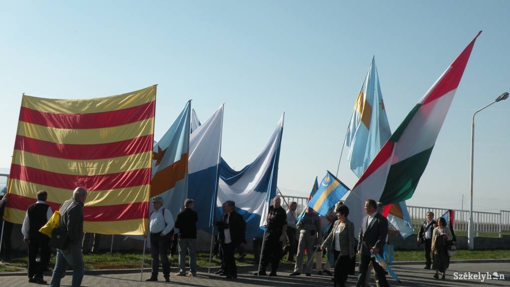 Európai autonóm területek zászlóival, valamint a magyar és székely óriászászlóval érkezett meg a rétyi útkereszteződéshez a Magyarok Világszövetségének két autóbusza. Az 5x3-as zászlók Baszkföld, Katalónia, Skócia, Dél-Tirol nemzeti szimbólumai. Folyamatosan érkeznek kisautóval és autóbuszokkal a résztvevők, Maros, Hargita, Kovászna, Brassó megyei autókat lehet látni leparkolva, de érkeztek Debrecenből is. A székely zászlók mellett román és angol nyelvű feliratok is vannak. A rétyi útkereszteződésnél most már kezd dugó kialakulni, Sepsiszentgyörgy irányából már hosszú a kocsisor. Megérkeztek a rétyiek, élükön a fúvószenekarral. Megkezdődött az istentisztelet.
