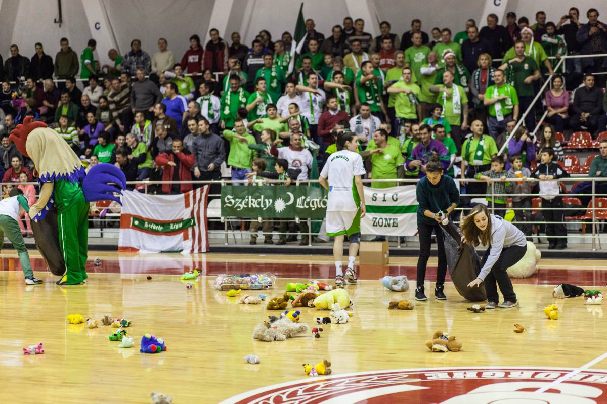 Plüssjátékokat dobáltak be félidőben csütörtök este a szurkolók a sepsiszentgyörgyi Szabó Kati sportcsarnokban zajló női Európa Kupa mérkőzésén. A meccset a Sepsi-SIC -es lányok nyerték, akik a kórház gyerekosztályának szánt ajándékokat is begyűjtötték.