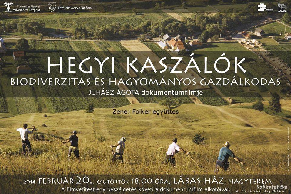 A sepsiszentgyörgyi Lá­bas Ház nagytermében csütörtökön 18 órától bemutatják a Hegyi kaszálók – Bio­diverzitás és hagyományos gazdálkodás című dokumentumfilmet. A kaszálók a hagyományos állattartó gaz­dál­kodás alapját képezik Szé­kelyföldön, ugyanakkor rend­kívül fajgazdag, természetvédelmi szempontból is értékes élőhelyek.