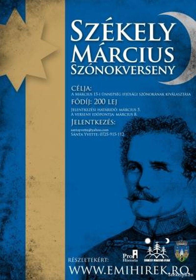 Az Erdélyi Magyar Ifjak Háromszéki Szervezete és Sepsiszentgyörgy Polgármesteri Hivatala ötödik alkalommal szervezi meg a Székely Március Szónokversenyt, amelyre 14-24 év közötti fiatalok jelentkezését várják március 5-ig.