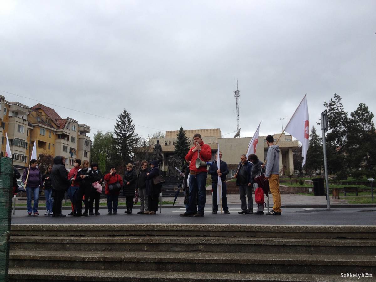 Sepsiszentgyörgyön mintegy harmincan álltak a kormányhivatal épülete előtt, a szakszervezet vörös keresztes fehér zászlóit lobogtatták, hangos sziréna és füttyszóval hívták fel a figyelmet a rendszer hiányosságaira.