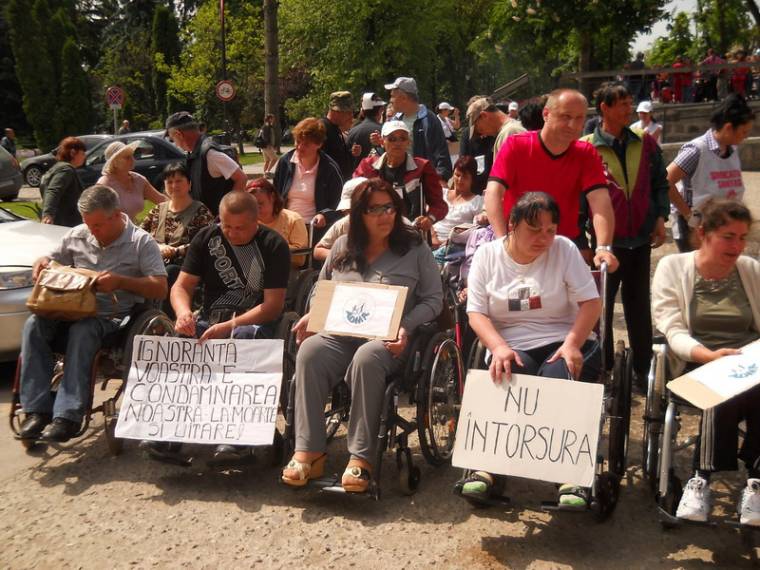 Mintegy 20–25 mozgássérült és az előpataki Dr. Radu Horia Izomsorvadásos Betegek Intézetének 60–70 alkalmazottja sztrájkolt csütörtökön a Kovászna megyei kormányhivatal előtt. A tüntetők a minisztériumi döntés ellen tiltakoztak.