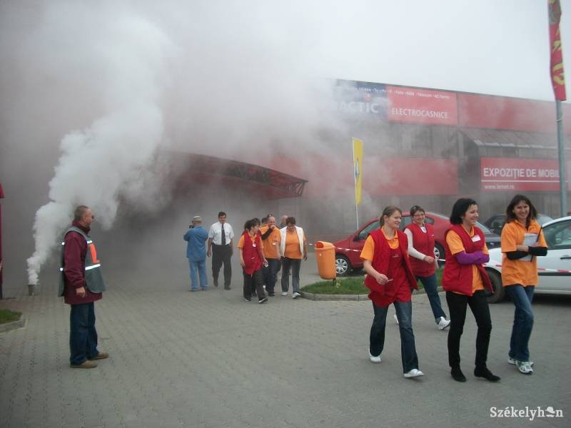 Tűzeset miatt embereket kellett, hogy kimenekítsenek a Sláger Center bevásárló központból, majd az épületben megtalált bombát is hatástalanították, ezt követően egy földrengés által életveszélyes állapotba került épületből kellett kiszabadítani a bent rekedt embereket – mindent egybevetve szinte tökéletesre sikeredett a katasztrófa délelőtt Gyergyószentmiklóson.