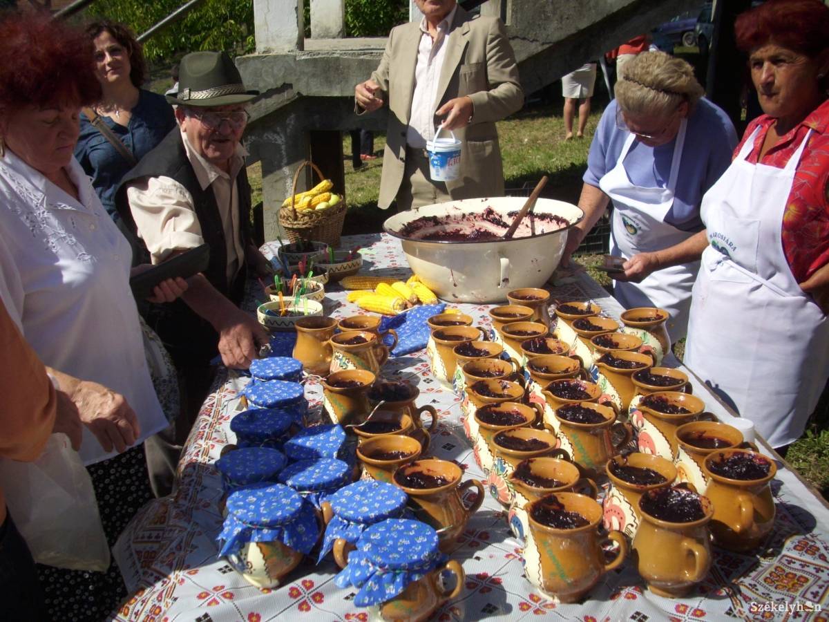 A művelődési ház melletti placcon hat rézüst alatt ropogott a tűz, kotyogott, bugyogott a sötétlila massza, amit fából készült keverőszerkezetekkel igyekeztek nem kozmálásra bírni, egy asztalnál korondi cserépfazekakba \"csomagolták\" a lekvárt, ami aztán azonnyomban el is tűnt a vendégek szatyraiban. Két órára már csak az üres kondért lehetett nyalogatni – kényszerű kóstolgatásból.