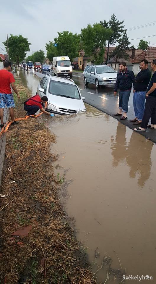 Maroskeresztúron, a kombináttal szemközti oldalon, a dombról leérkező víz annyira feltöltötte az útmenti árkot, hogy nem lehetett látni, hol van az útpadka. Emiatt egy Opel bele is ment az árokba, ahonnan már nem tudott saját erejéből kijönni, ki kellett vontatni.