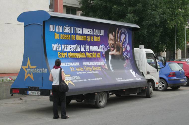 Marosvásárhely utcáin több helyen is autós reklám jelzi, hogy kedden valami különleges zajlik a Vár udvarán. „Még keressük az év hangját. Ezért elmegyünk Hozzád is” – hirdeti a magyarországi TV2, amelynek stábja ma egész nap Marosvásárhelyen keresi a tehetségeket.