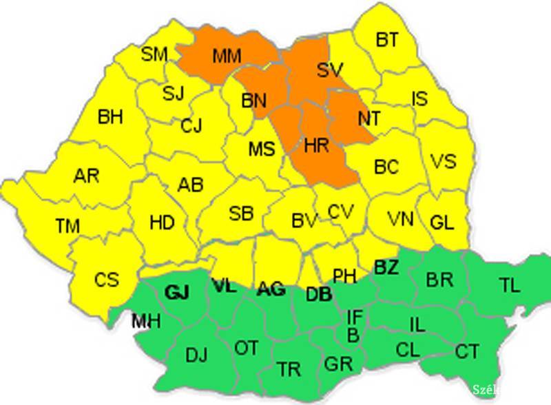 A narancssárga riasztás Hargita megye mellett Maros, Suceava, Neamţ és Beszterce-Naszód megyékre is érvényes. Egyébként az ország nagy részén sárga riasztás van érvényben.