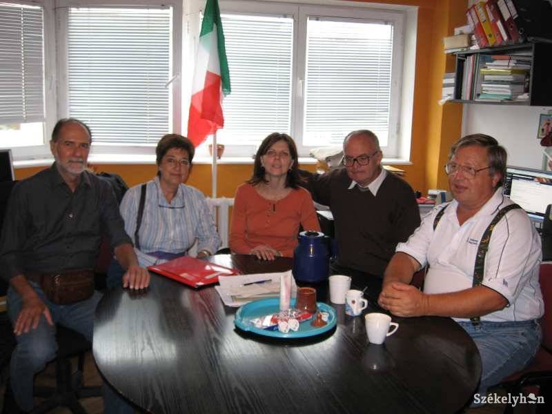 Fotónk érkezésükkor készült a Soros Oktatási Központ irodájában. Balról jobbra: Claudio Russo, Oliveri Concetta, Ferencz S. Katalin, Zsigmond Márton és Boldizsár Ágoston