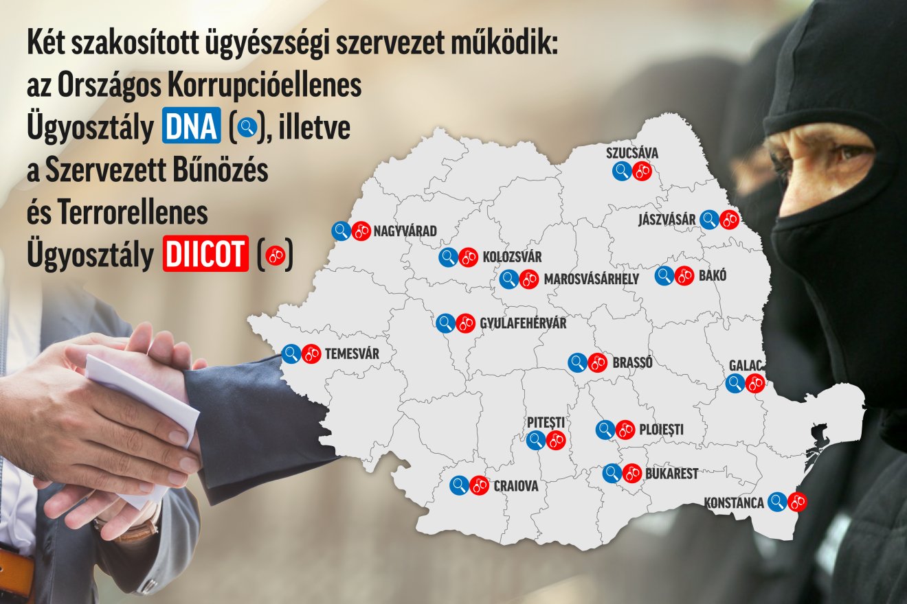 A Legfelsőbb Semmítő- és Ítélőszék mellett működő legfőbb ügyészségen belül, amely az összes alárendelt ügyészség tevékenységét koordinálja, két szakosított ügyészségi szervezet működik: az Országos Korrupcióellenes Ügyosztály (DNA) és a Szervezett Bűnözés és Terrorellenes Ügyosztály (DIICOT).