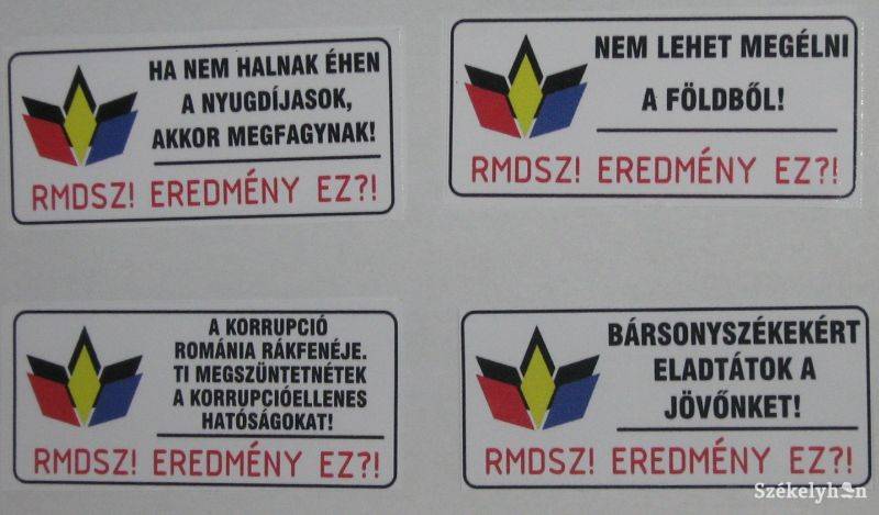 A közleményben említett matricák. Az RMDSZ szerint az EMNP áll azok kihelyezése mögött