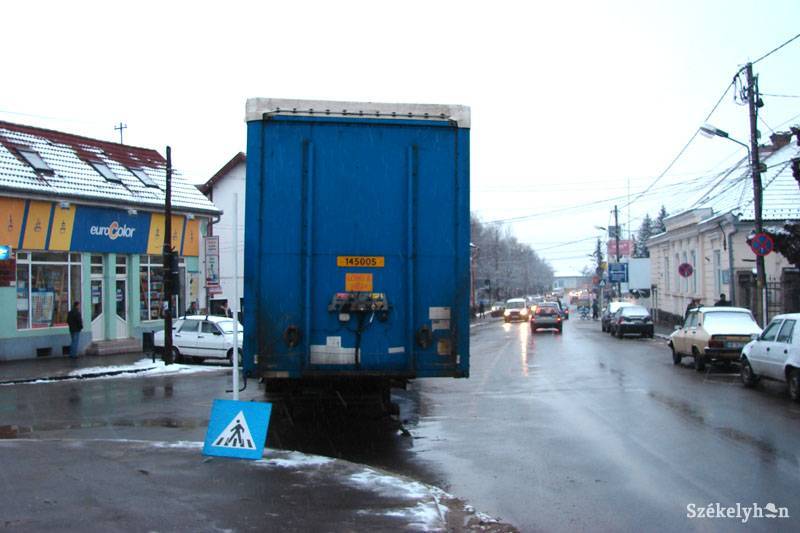 Kedden, január 19-én délután egy bukaresti rendszámú kamion a Bethlen Gábor utcában, a rendőrség felől a központ fele haladt. A sofőr figyelmen kívül hagyta a Villanytelep és Tábor utcai kereszteződésnél található tiltótáblát, mely szerint nagyobb tehergépjárművek nem hajthatnak be a pékség irányába.