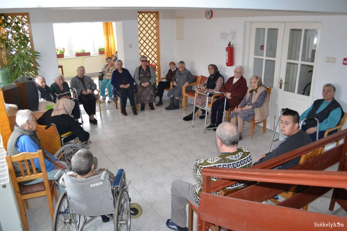 „2007-ben lettem beteg, lebénult az egyik felem egy pillanat alatt, aztán a leányomnál voltam egy évet s hét hónapot. Egy darabig gondozónő járt hozzám, de aztán beteg lett, a fiataloknak pedig munkába kellett menni, magamat nem tudtam rendezni. Huszonegy éve vagyok egyedül, innen, a hegyen túlról, Homoródalmásról származom” – szól közbe Emma néni, akit gyerekei, unokái minden hónapban meglátogatnak. „Azt sem mondhatom, hogy ide betettek engem, nem törődnek velem és itt nem jó. Nagyon meg vagyok elégedve mindennel. Jártam haza születésnapkor, de a korosztályom szinte mind kihalt már a szomszédságból, az se lenne, aki látogasson” – mondja az almási asszony.