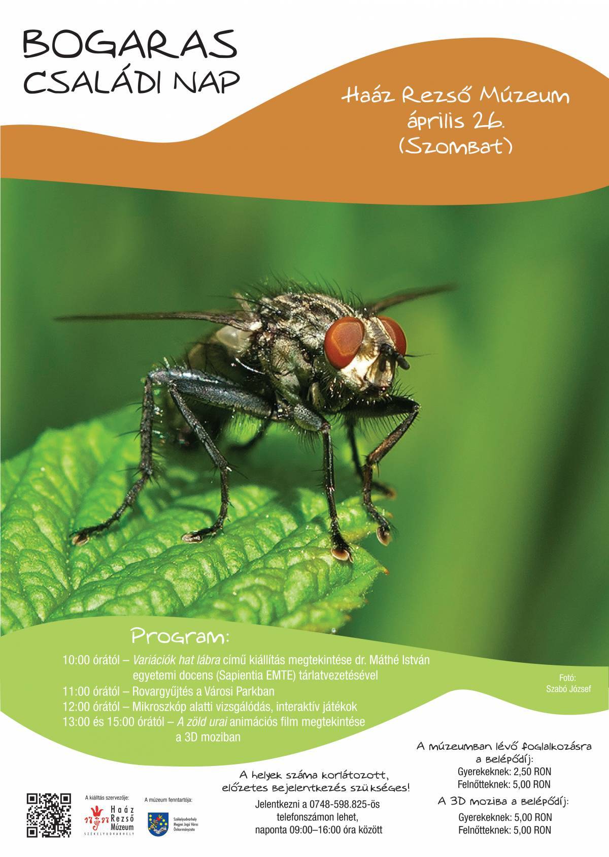 E különleges program kínálatában 10 órától a Variációk hat lábra című kiállítás tekinthető meg (a múzeum főépületében, Kossuth Lajos utca 29. szám) Máthé István (Sapientia EMTE) szakmai tárlatvezetésével, 11 órától rovargyűjtés a Városi Parkban, 12 órától mikroszkóp alatti vizsgálódás, interaktív játékok, 13 és 15 órától pedig A zöld urai animációs film megtekintése is szerepel a programban (a 3D Moziban, Szent Imre utca 2. szám).