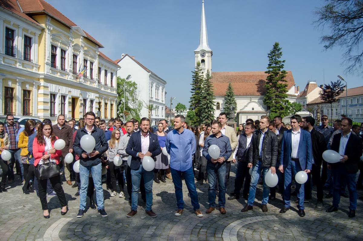 Több mint száz fiatal RMDSZ-es tanácsosjelölt gyűlt össze pénteken a székelyudvarhelyi Márton Áron téren, ahol egy sajtótájékoztatón mutatkoztak be a választóknak. Az akciót a Magyar Ifjúsági Értekezlet szervezte.