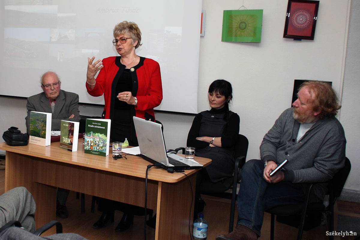 Folytatásként Ambrus Tünde történelmi-földrajzi vonatkozású Székely falutízesek című kötetét ismertette. A szerző doktori disszertációja alapján kiadott kötetében a sajátos székely településrendszer, a tízesek múltját, a jelenben fellelhető nyomait vizsgálja. „A tízes falurész nemcsak területbeli egységet jelent, hanem az adott közösség társadalmi-gazdasági tevékenységének keretét is. A természeti, társadalmi, gazdasági és infrastrukturális szférák ötvöződése” – fejtette ki a szerző, aki a falutízeseket a műszaki és a társadalmi berendezkedés egy hagyományos, főként a Székelyföldre jellemző struktúrájának tekinti.