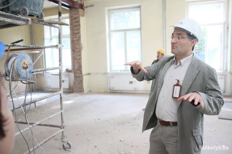A pincétől a tetőtérig zajlik a munka, a bentlakások szobáinak például már csak hűlt helyével szembesül a látogató. Az építőteleppé avanzsált iskolában Ráduly Róbert Kálmán polgármester vezette végig kedden az újságírókat, de jelent volt a tervező, a kivitelező cégek több képviselője, a projekt lebonyolításával foglalkozó szakemberek. A csapat egyébként heti rendszerességgel végigjárja az épületet, szemlélődnek, majd egyeztetik, megvitatják a látottakat, észrevételeket.