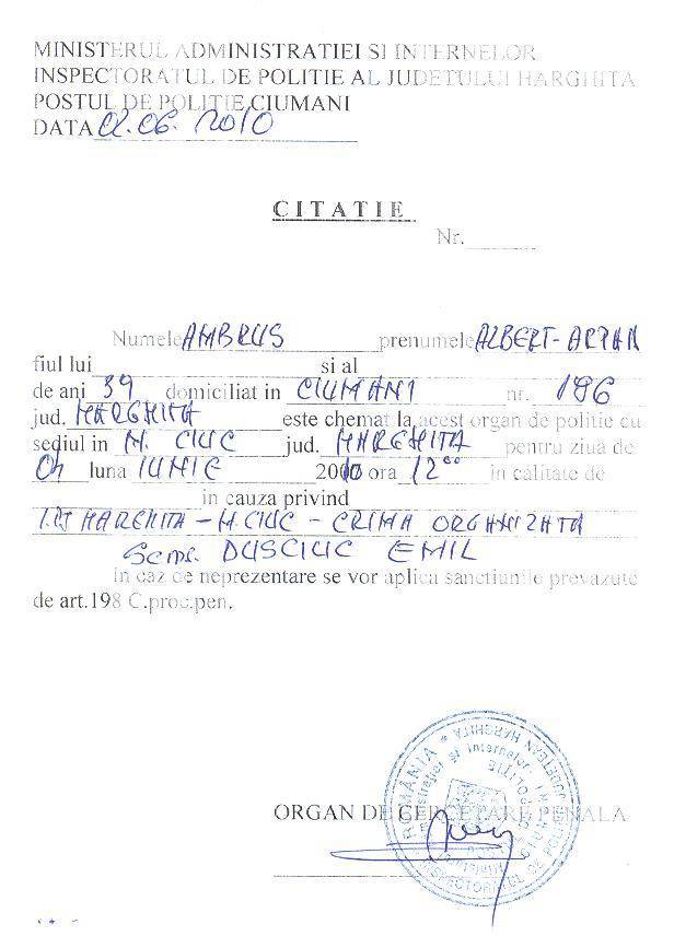 Közben újabb idézés érkezett az egyesület több tagjának nevére. A maroshévízi tagok csütörtökön reggel kilenc órára kell megjelenniük a csíkszeredai rendőrség szervezett bűnözés felderítéséért felelős titkosszolgálati rendszerénél, közölte Czirják Károly. Azonban a gyergyócsomafalvi alapító tagok sem ússzák meg a kihallgatást: nekik pontosan a trianoni békeszerződés emléknapján, június negyedikére szól az idézésük, mutatta az okmányt Borsos Géza József alelnök, melybe nincs beírva, hogy milyen minőségben és milyen céllal vannak a fent említett személyek beidézve, de mivel mindhárman alapító tagjai a Dr. Urmánczy Nándor Egyesületnek, és az egyesület ellen per folyik, feltételezhető, hogy ez ügyben akarja őket a rendőrség kihallgatni.