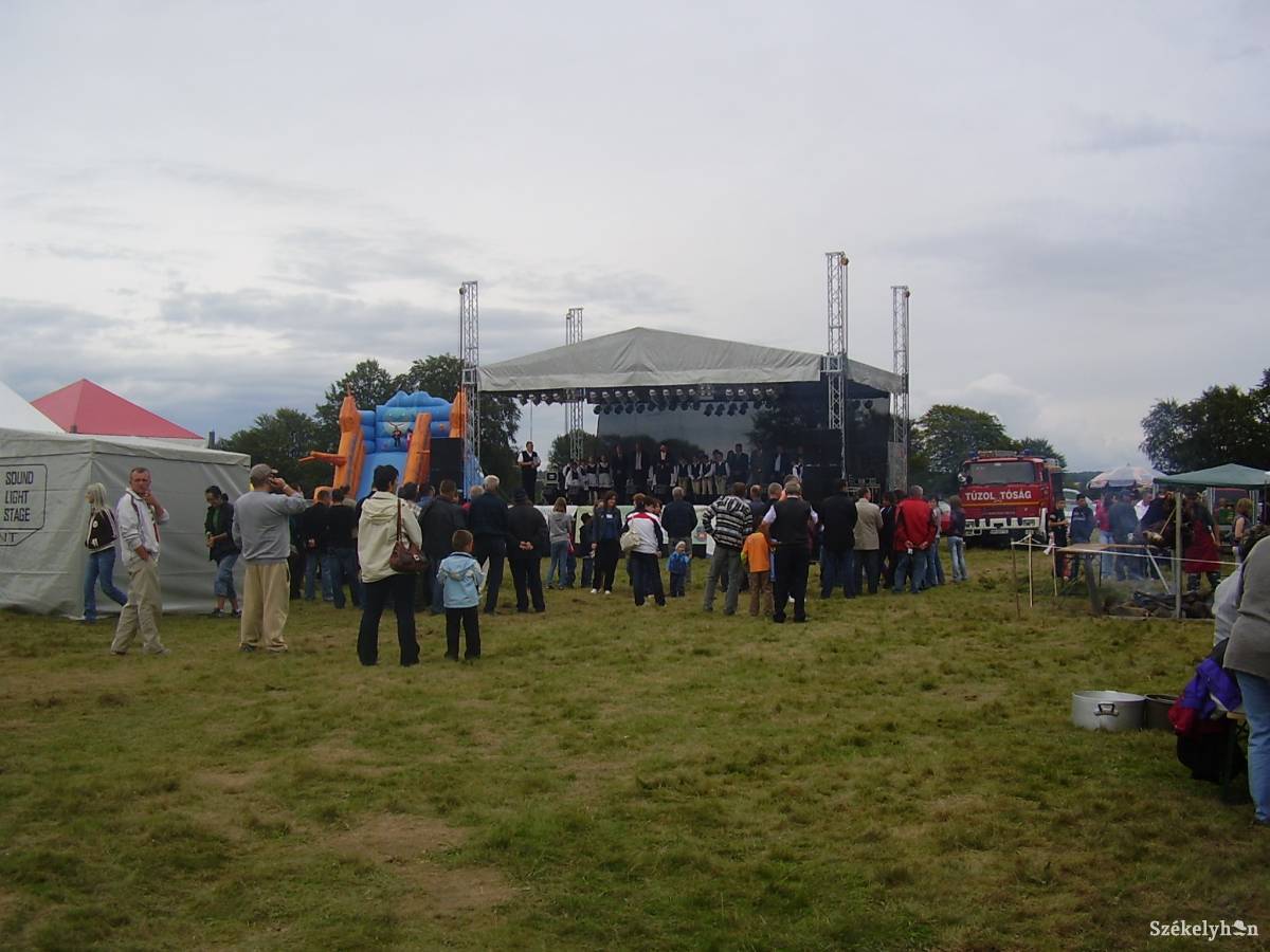 Az ünnepség a szokás szerint nagyszerűen berendezkedett a Kalonda-tetőn. Itt még az is otthon érezheti magát, akit nehezen lehet kicibálni a betonrengeteg közül. Megjelenik egy farkaslaki tűzoltókocsi, be is áll a színpad mellé, majd hangos szirenázással jelzi a hivatalos megnyitó kezdetét. Közvetlen közelében egy ökör forog a nyárson, szinte ugyanolyan tempóban sül, mint ahogy fogy. A sátrak alatt a testvértelepülések csapatai főznek versenyt egymással: a feliratok szerint a győriek szigetközi halászlevet, az ajakiak töltöttkáposztát, a kemenceiek magyaros gúlyást, a lengyeltótiak pedig növendékpörköltet készítenek.