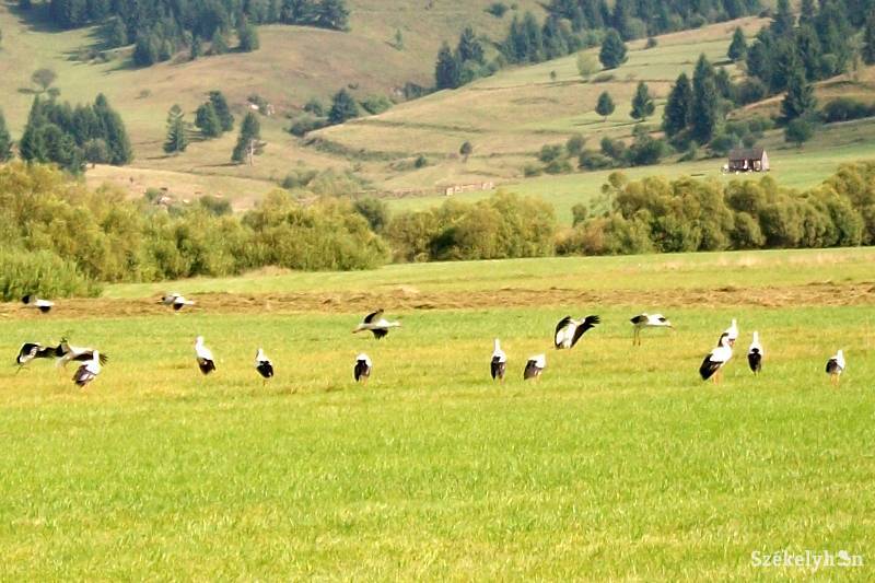 Hatalmas gólyasereg lepte el kedd reggel a Gyergyótekerőpatak és Vasláb közötti mezőt: a csapatokba verődött hosszúcsőrűek szokásos őszi utazásuk elején tartanak. Ne tévesszen meg senkit a szeptemberi gólyainvázió: a mi gólyáink már augusztus végén elhagyják fészküket, akiket pedig mostanában látunk itt áthaladni, azok vélhetően Lengyelország környékéről tartanak Törökországon át Dél-Afrikába, nálunk csak megpihennek egy keveset.