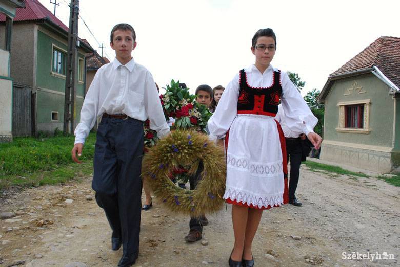 Három fiatal lóháton, dobszóval behívja a falut. A déli harangszó előtt a vártemplom körül gyülekeznek a lakosok és vendégeik, majd lóháton, szekereken, zsoltárokat énekelve kivonulnak a határba. Visszafelé a barázdák között a konfirmandusok szüleikkel koszorút kötnek, amelyeket a későbbiekben is a templomban tartanak.
