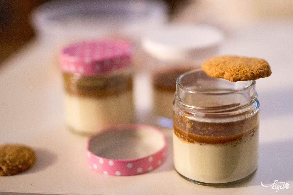 Elkészítése: A tejszínt a tejjel és a cukorral felmelegítjük, belereszeljük a tonkababot. A zselatint hideg vízbe áztatjuk, majd kicsavarjuk, levesszük a tűzről a tejszínes masszát, és elkeverjük benne a zselatint. A még folyékony masszát poharakba öntjük, és a hűtőbe tesszük, amíg megdermed. A keksz hozzávalóit összegyúrjuk, ízlés szerint formákra vágjuk, és 180 fokon 15–20 perc alatt megsütjük. A karamellszószhoz a cukorból és a vízből karamellt főzünk, hozzáöntjük a tejszínt, addig kavarjuk, amíg sima szószt kapunk. Legvégül beletesszük a vajat, a vaníliarúd kikapart belsejét és a sót. A kihűlt pohárdesszertekre öntjük a karamellszószt, és gyömbérkeksszel tálaljuk.