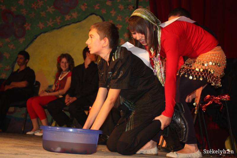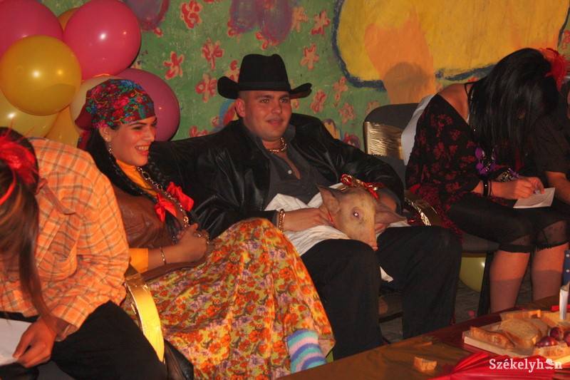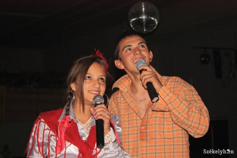 Lassan már nincs középiskolás vetélkedő videó nélkül, ami ezen az estén is a program elején kapott helyet mint témafelvezető. A legütősebb kellékek természetesen szerepeltek a kisfilmben, hiszen luxusautóban és menő roma csávókban nem volt hiány, eldördült néhány fegyver és többen áldozátául estek a kereskedő maffiozó figuráknak. Aztán kezdődhetett az élő program, a végzősök kis színdarabjaival, amiből kiderült, hogy a cigányvajda és kedves felesége a gólyabál nyerteseit fogják utódnak megnevezni, hiszen saját „pujájuk” nincs, mert a vajda mindig félre járt.