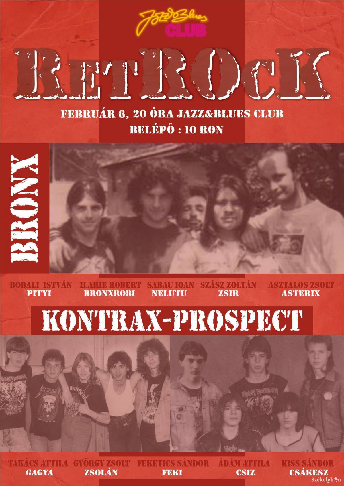 A legközelebbi Retrock koncertre február 6-án, 20 órakor kerül sor, a helyszín ismét a Jazz&Blues Klub. Ez alkalommal a Bronx és Kontrax/Prospect zenekarok csapnak a húrok közé. A Bronx 1992 és 2002 között Marosvásárhely mellett Szászrégenben, Csíkszeredában, Székelyudvarhelyen, Sepsziszentgyörgyön koncertezett, de még Craiován is ismerték a fiúkat. Az első marosvásárhelyi zenekar hivatalos videoklipje is az ő nevükhöz fűződik. A fiúk 2002 óta nem játszottak együtt, egészen mostanáig. Tagok: Bodali István (ének), Ilarie Robert (gitár, vokál), Sabău Ioan (gitár, vokál), Szász Zoltán (basszusgitár, vokál), Asztalos Zsolt (dobok).