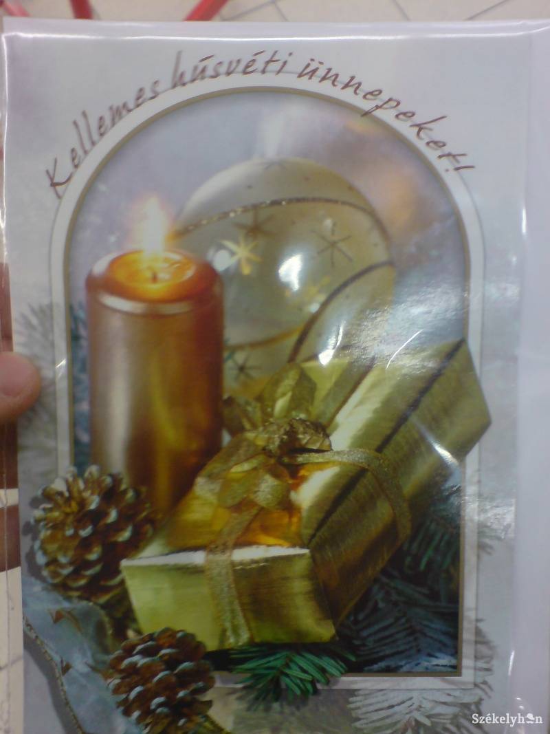 Erre a képeslapra bukkantam másfél-két hete. A marosvásáhelyi Kaufland üzletláncban a képeslapok között sétálgattam, amikor felfigyeltem a „Kellemes Húsvéti Ünnepeket!” feliratra, ami azonban karácsonyi képhez volt csatolva. Jót nevettem és azonnal lefotóztam.