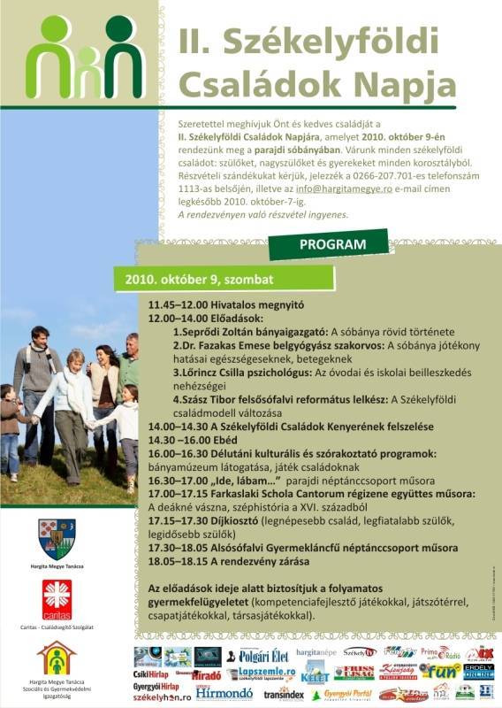 Délelőtt előadások lesznek a sóbányáról, az óvodai és iskolai beilleszkedésről, valamint a székelyföldi családmodell változásáról, ebéd előtt pedig felszelik a Székelyföldi Családok Kenyerét.
