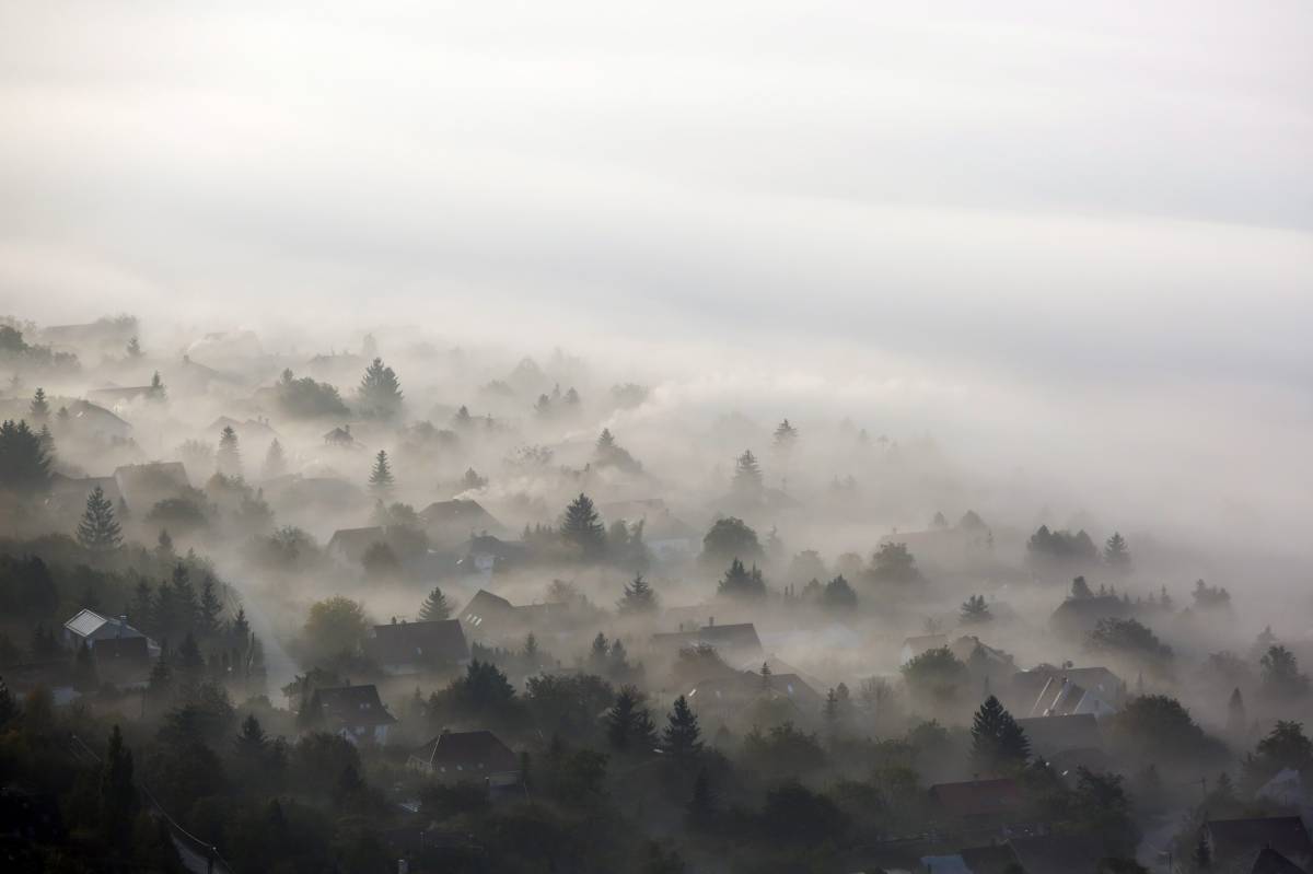 A fotót Mohai Balázs, az MTI fotósa készítette a ködbe burkolózott Pilis felett Pilisborosjenő közelében a Nagy-Kevélyen.