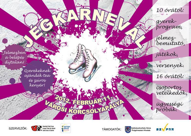 A székelyudvarhelyi városi korcsolyapályán zajló esemény programja rendszerint két részre oszlik. Délelőtt a kicsiknek, délután pedig a nagyobbaknak szól. Mondani sem kell, hogy aki beöltözik a karneváli korcsolyázásra az meglepetésekben részesül, valamint az egész nap zajló ügyességi vetélkedőkön ajándékokat nyerhetnek a résztvevők. A rendezvény az Udvarhelyi Fiatal Fórum és Székelyudvarhelyi Polgármesteri Hivatal közös szervezésében zajlik február 11-én, szombaton 10 és 21 óra között.