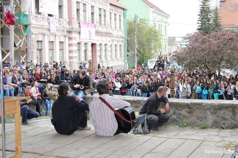 Tomboló fiatalokkal telt meg május 11-én délben a Márton Áron tér, ahol a XIX. Székelyudvarhelyi Diáknapok keretében bemutatkoztak a nyilvánosság előtt az idei diákcsapatok, stábok és polgármesterjelöltek. Volt ott minden, ami a bulihoz szükséges: plüssmacirugdosástól kezdve a tyúkpórázon való sétáltatásán át az Üvegtigris újrajátszásáig minden – egyszóval diákosan partihangulat volt.