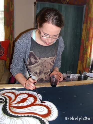 – Harmadik osztályos koromban Budapesten édesanyám látva, hogy átszabtam-varrtam a játékbabák ruháit, délutáni művészeti oktatásra íratott be. Két év múlva hazaköltöztünk, és a csíkszeredai művészeti iskolába írattak szüleim, ott is érettségiztem textil szakon, bár a főszak a szobrászat volt. Már a líceumban megismerkedtem a batikolási technikával. Annyira megtetszett, és jól is sikerült az első munkám, hogy végül az lett a diplomamunkám alapja. Elsősorban az tetszett meg, hogy meglepetésszerű mindig, hogy mi lesz a végeredmény, mert amikor a viaszt eltávolítom, akkor derül ki, hogy milyen. Tetszett, hogy rengeteg apró mintát bele lehet vinni, grafikus jellegű rajzokat és sok-sok színt. Szeretem a színes dolgokat, a textúrákat, természetes anyagokat. Már az is érdekes, hogy az ember felfedezte azt, hogy az őt körülvevő dolgokból hogyan tud előállítani számára hasznos dolgokat. Szeretem a kendert, a gyapjút is. Aztán Temesváron végeztem az egyetemet ugyancsak textil szakon, majd mesteriztem tájépítészeten. Úgy képzeltem, hogy a kettőt lehet párhuzamosan csinálni, de a textilezés most háttérbe szorította a tájépítészetet. Igaz, nincs sok tájépítészeti megrendelésem, mert Székelyföldön még ez nem egy ismert terület, nem igénylik az emberek. De pár éven belül szerintem nálunk is teret hódít, mint például Magyarországon, és akkor elképzelhető, hogy kerttervezéssel is többet fogok foglalkozni, ha marad rá időm.