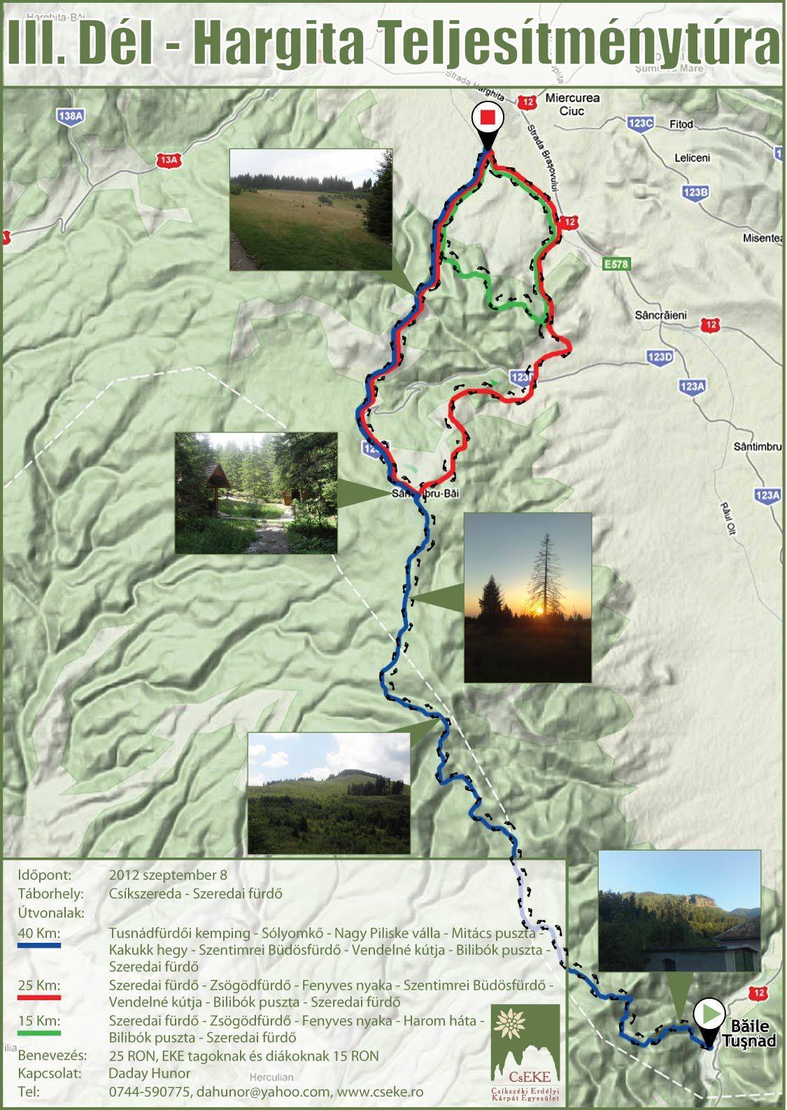 A 15 kilométeres szakasz útvonala: Csíkszereda–Zsögödfürdő–Rejtek patak forrása–Bilibók-puszta– Csíkszereda. Indítás 9 és 10 óra között a Szeredai fürdőtől, szintidő 7 óra, szintkülönbség 400 méter.