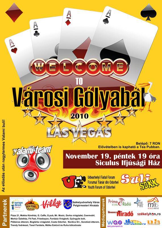 A Városi Gólyabál eredményhirdetését követően nagytermes Valami Buli fogadja az ünneplőket, a teljes estére 7 lej a beugró, mely már elővételben is megvásároható a Kossuth utcai Tea Pubban vagy az UFF irodában.