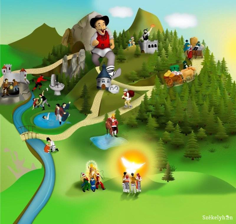 Óriások, ördögök, sárkányok, történelmi és képzeletbeli személyek, amott Orbán Balázs, amint épp az aranyosszéki Szent Lászlót fotografálja, ahogy a Tordai hasadékon ugrat át a lovával, emitt pedig egy ördög görget lefele egy követ a Hargitáról a bogáti erdőbe, nem messze tőlük a pityókos jánosfalviak leskelődnek a bokorból: kecskéket látnak a tulajdonképpeni gólyák helyett. Több mint 140 székelyföldi monda és legenda kap helyet azon a legenda-térképen, amelynek elkészítési munkálatai közel két éve kezdődtek el és a tervek szerint november közepén érnek véget.