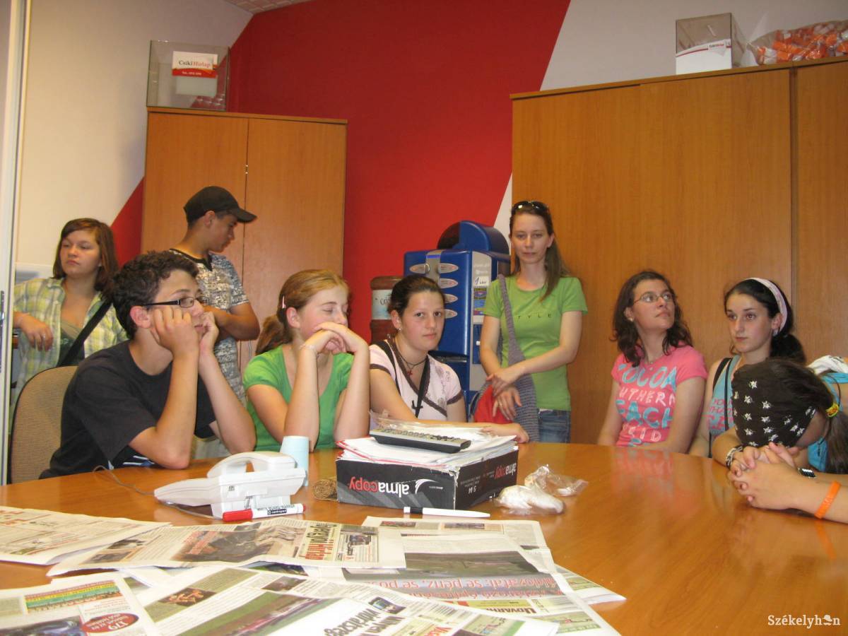 Az újságírás iránt érdeklődő 21 résztvevő az alapítvány napközi otthonaiból, házaiból érkezett a táborba: szárhegyi, ditrói, felsősófalvi, dévai, kovásznai, csíkszeredai, csíksomlyói gyerekek. A látogatás után körbeültünk a Vár-téren, beszélgettünk a napilap rovatairól, miközben kis fotósaink is ellestek néhány pillanatot. Számtalan kérdésük volt a 12–14 éves résztvevőknek. Másnap reggel megérkeztek az élménybeszámolók és képek Pente Andrea és Stibál Róbert „tanítványaitól”.